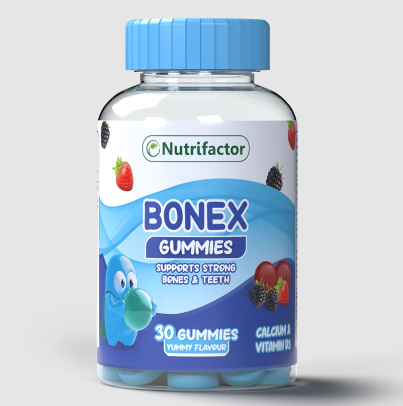 - Nutrifactor’s Bonex gummies are gelatin based nutritious gummy bears with refreshing flavor and Calcium which support stronger bones, teeth and muscles.