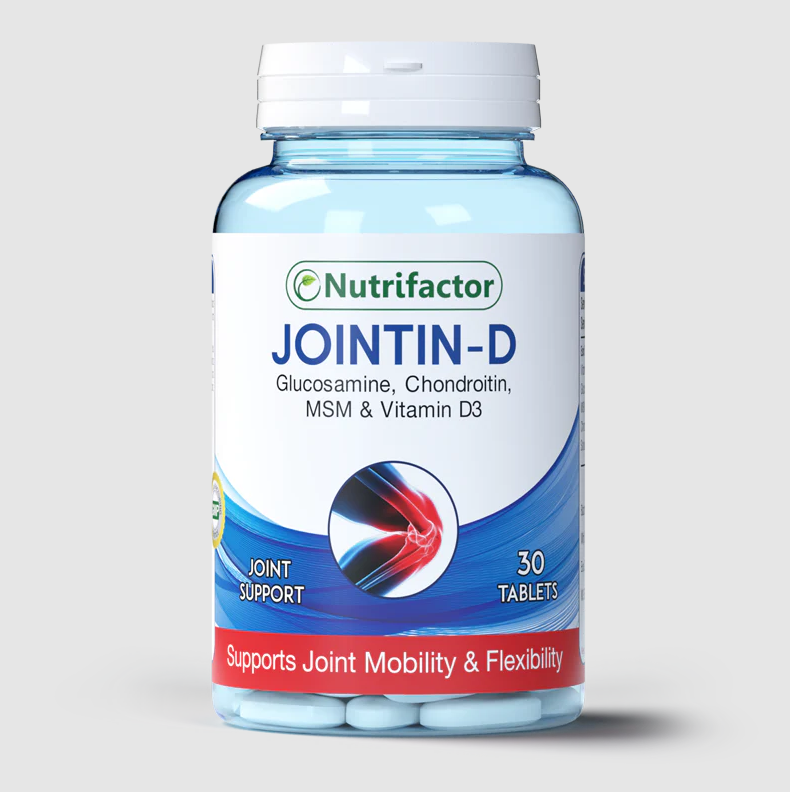 • Nutrifactor’s Jointin-D is a joint support formula, which contains 5 crucial nutrients including, Glucosamine HCL and Chondroitin Sulfate which help to make the joints movement comfortable by providing support to healthy joints structure and cartilage.