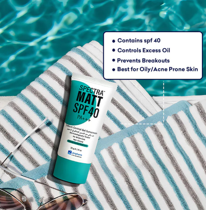 - Apply Spectra Matt Sc 40 evenly over the entire face, neck and other exposed areas at least 20-30 minutes before sun exposure.